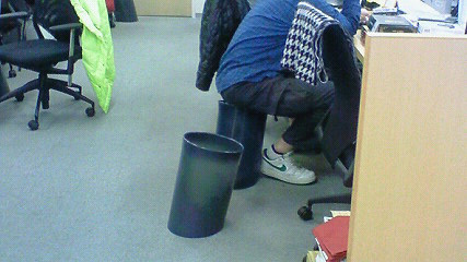 が椅子にしているのは、ダストボックス。すなわちゴミ箱。