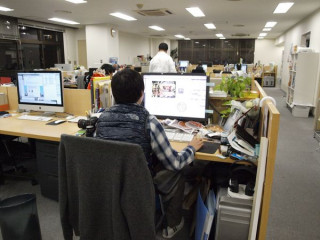 ただいまデザイン中 あさってからはじまるあたらしいよみものコンテンツを 「むーーーーーーん。 タイトルまわりのデザインで ちょっと悩んでるんすけど〜」 ‥‥ということなので、ぐっさんの机のまわりで 「担当者の舞」を踊ってみました。 (註 担当者の舞とは: たんとうしゃのまい。 コンテンツのテキスト担当が デザインがしあがる過程に同席し 構成や希望などを伝えていくこと。 でもその行為の意味の大半は、実は がんばれデザイナー、 がんばれデザイナー、 と、わっしょいわっしょいの 応援をしているだけである、 というもの) そして、1時間ほど舞いました。 ようやくタイトルまわりができあがりそうです。 2010/12/14 18:15 |