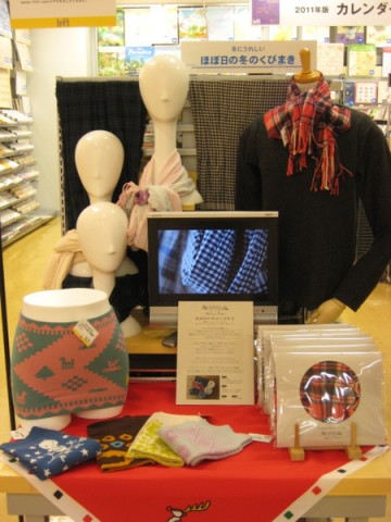 明日からお待ちしてます! 閉店後の丸の内ロフトさんにお邪魔して、世界のかわいいハラマキと冬のくびまきを並べてきましたー。 ムックとタナカちゃんで練習をしたかわいい巻き方もなんとかうまくいったかな。 では、最後にみんなで商品を持ちながらはい、ポーズ! 京都ロフトさんからも陳列ができましたよー。 というメールが届きました。 くびまきの巻き方をしっかりと学んでくださったようです! ところで、トルソーって、上半身だけじゃなくて、おしりや足、そして、頭部もあるんですね。 2010/12/14 22:24 |