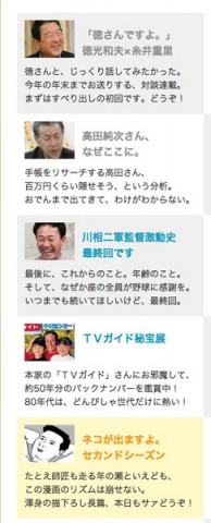 今日のメニューの左側上から3つのタテ並び、おじさん(失敬)3人が並んでるの、いいですね。