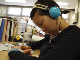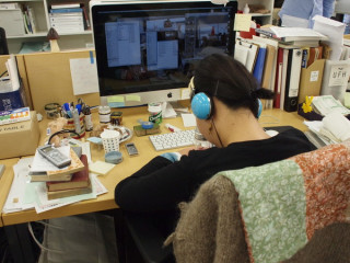 とやま、寝続ける。 うむ、寝ておる。 とやまが寝ておる。 まだわりと新人のくせにじつに堂々と寝ておる。 ちょっとみっちゃん、そいつの堂々とした寝姿を写真におさめておいてくれたまえ。 うむ、まだ寝ておる。 ヘッドフォンをしているから周囲の物音にもまったく気づかず堂々と寝ておる。 お茶を抱いて、ぐうぐうと寝ておる。 こーんなに近くから撮影してもまったく気づかず寝ておる。 いやはや、あっぱれ、見事な居眠りっぷり。 しかし、起きないね。 まぁ、うちの職場は居眠りが許される感じの職場ではあるけれども、ふつうの乗組員なら、だいたいこのへんで雰囲気に気づいて 「・・・はっ!」と目覚めるところなんだけどな。 うしろに回り込んだりして、いろんな角度から撮影してみてもまだまだ寝ておる。 いやはや、大物じゃ。 大きな器を持った若者じゃ。 って、それにしてもさ、ちょっと寝すぎじゃね? 眠り、深すぎね? と、隣の席の南郷先輩が。 うん、まあ、たしかに、そうかもね。 こんな中途半端な姿勢でね。 そうこうしているうちに 「とやまが寝てる」「まだ寝てる」と人がわいわい集まってきまして、このような、おかしなおかしな、記念撮影と相成りました。 ちなみに当人、これを書いているいまもまだ寝ております。 2010/12/17 15:56 |