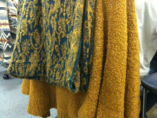今日は上着もストールも黄土色。