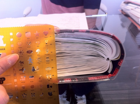 タテノさんの手帳タワー 来年2月1日に販売が始まる 「ほぼ日手帳2011 Spring」の準備が着々と進行しております。 そのひとつ。 「ほぼ日手帳2009公式ガイドブック」でお世話になったマンガ家のタテノカズヒロさんと引越の合間をぬって打ち合わせをしました。 打ち合わせもある程度済んだところで、お訊きしました。 「タテノさん、今年はどうでした?」 カバンから取り出した2冊が←これです。 タテノさんは「ほぼ日手帳」になんでもかんでも貼ってしまう方。 2009年版も7センチという厚みを叩き出しました。 2010年版はカズンだったせいかあまり伸びず(本人談) しかも中には吉田戦車さんの奥さん、伊藤理佐さんからいただいたイラストつきの手紙が貼ってありました! なんでもお隣に住んでいたそうなんです。 (偶然!) そんなタテノさん、理系出身という長所を活かし、現在ブログで数字のマンガを連載してます。 「コサインなんて人生に必要ないと 思った人のために数学のはなし」 読んだあと、なんか賢くなった気がする、そんなマンガです。 「ほぼ日手帳2011 Spring」をお楽しみにー。 2010/12/24 19:29 |