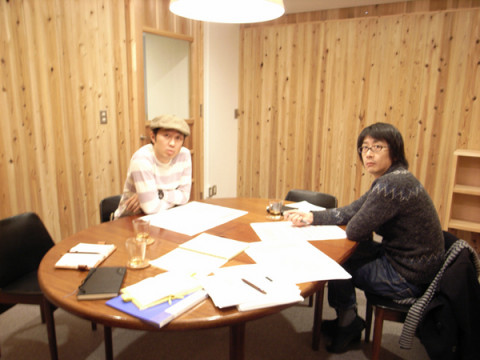 社長シリーズ その3 ウクレレを弾いたあとには、会議である。 これは、『小さいことばシリーズ』の5冊目と、『ブイヨンの気持ち。』の2冊目と、『さよならペンギン』の復刻版と3冊の本を作る会議である。 会議をするまえに、プリグラフィックスの清水さんに会社を案内だ。 そして、会議室に固有の名前をつけるべく、頭をひねった。 まだ、決定に至らず。 社長がいなくなったあとは、3冊の本をどうやってつくるのかスケジュールの打ち合わせとか、忘れ物の確認などをした。 ちなみに、ここの会議室は、壁がラウンドしているので、 「KADO-R」というそうだ。 2010/12/27 22:16 |