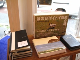 自由が丘にもあるんです。 自由が丘の「カタカナ」というすてきな雑貨店があります。 こちらは、代表の河野さん。 以前 「どんな手帳をお店に置こうかな?」と検討されていたところTwitterを通してお客さまから提案されたのがほぼ日手帳だったそうです。 (ありがとうございます! Twitterのつながりっておもしろいですね) お店では ほぼ日手帳2011 WEEKSと ほぼ日ホワイトボードカレンダー。 あと、ほぼ日の本も一部お取り扱いいただいていますー。 あ、そうそう! 大図まことさんの 「毛-SHOCK!!」もありますよ。 カラフルでかわいいです〜。 「カタカナ」へのアクセスは こちらからどうぞ! 河野さん、また来年もどうぞよろしくお願いいたします! 2010/12/28 19:58 |
