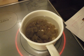 まずは、こんにゃくゆがいて。