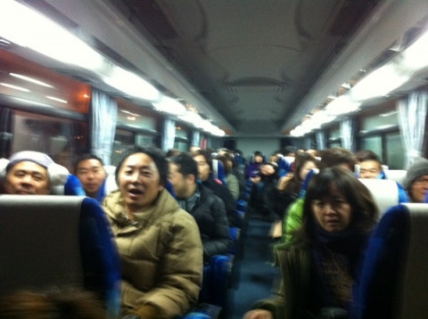 バスで夕食に向かいます。