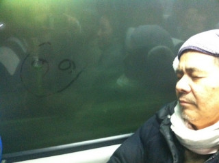帰り道、社長が窓にとても中途半端な作品を残して、眠りにつかれました。