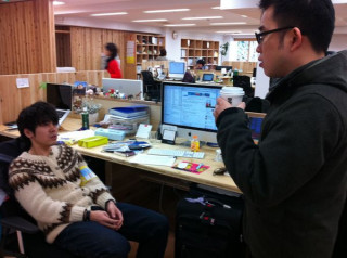 ベイちゃんが帰ってきたよ 「打ち上げが、延期になりまして‥‥」 「聞きました」 「どうしよう‥‥」 「どうすんの‥‥」 「‥‥‥‥‥‥」 「朝から腕章巻いて 張り切ってたのに‥‥‥」 「こんな、スーツケースとか バッチリ用意したのにな」 「うん」 「いつもすべてが からまわりの男‥‥」 「え?」 「オレ‥‥」 おっくん! おっくんしっかり! この後の動きは、こちらのページで! 逆に目が離せなくなってます。 種子島チームの3人に、応援メールもお待ちしています。 2011/01/19 14:50 |