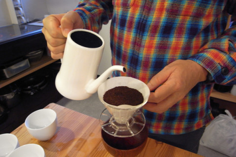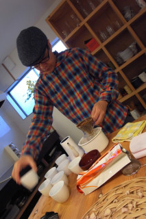 初うさぎ珈琲。 たいせつな来客があるとかで テンパりつつも、その大役を終えてほっとした山下、 「みなさん、ひいた豆が まだあるので、 すこし、おめしあがりに なられませんか」 と。 なりますなります、飲みます飲みます。 ということでキッチンへ。 制作手順を追いますと、こうなります。 「豆を適量入れます」 「湯を沸かします」 「すこし、さましたのち」 「口のほそいポットにうつして」 「すこしずつ、そそぎます」 「さいごは一気にそそいで」 「ぜんぶ落ち切る前に外します。 (最後にまずいぶぶんが残るので)」 「ただし、そのままだととても濃いので」 「このみの味になるまで お湯でうすめます」 「カップに入れて、 おめしあがりください」 ということになりますね。 それにしてもていねいだ。 味はもちろん! おいしかったです。 うさぎ年の、初うさぎコーヒーでした。 2011/01/20 17:14 |
