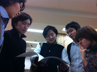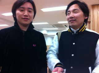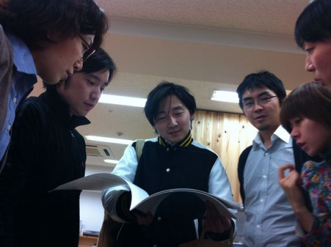似てる人 最近、約2名のほかの会社で働く人たちが 「ほぼ日」オフィスに通っています。 かれこれ1週間になります。 (写真中央の 大きな冊子を持っている「伊藤さん」と その右隣りにいる「中西さん」です) その、ほかの会社で働く人たちが今日もやって来ました。 来るなり、私の席のうしろでものすごい「ザ・雑談」を展開されていました。 あまりにも自然すぎる故、もう我が社社員かと思ってしまいます。 前から思ってたんですが、 人間のタイプとしては、半分だけ似てる気がします。 2011/01/21 19:09 |