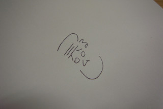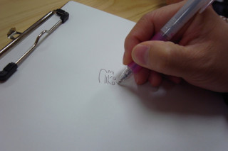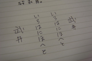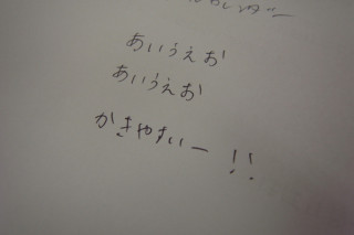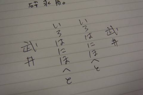 かきあじおためし。 「かきあじ、ためしてくださーい」 どうやら手帳用のあたらしいボールペン候補を探しているようです。 ←こちらの 「あいうえお あいうえお かきやすいー!!」 は、 きれいな字だねえ。 「ていうか武井さん、縦書きですか? しかも‥‥」 あ、はい、そうですね、わたくしつい、縦書きで、←そのうえ い い武 ろ ろ 武 は は井 に に 井 ほ ほ へ へ と と ってね。ちょっと昭和が過ぎるよね。 わざとじゃないんだよ。 おじさんなんだ。 そしたらもうひとりのおじさん 「どれどれ、 ぼくにもためさせて」 と、まったく躊躇なく、←さらさらと、これを。 つるさんはまるまるむし。 負けた。 2011/01/25 18:04 |