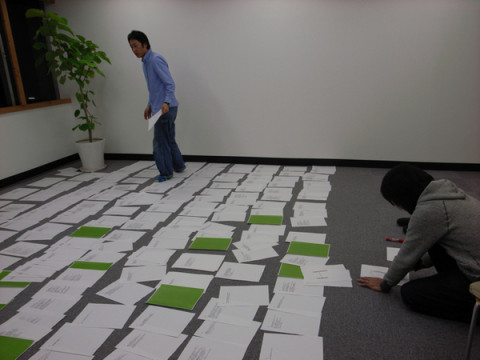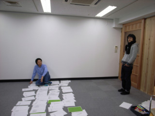 そして、最後に、ことばの紙を順番に回収していくときにも、ちょっと考えたり、清水さんと相談をしたり。