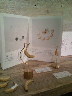 作品大賞のバナナ作家さん 作品大賞で糸井重里賞を受賞された、藤本雄策さんの展示会にきています。 受賞作品の 「無着色でできたバナナ」 も展示されてますよ。 今回は素敵な箒を作られる作家さん、吉田慎司さんとの二人展。 1月30日(日)まで西荻北にあるギャラリー「みずのそら」さんにて開催中です。 作家さんもいらっしゃるので、直接バナナのお話しなどいかがでしょうか。 わたしもあややも大好きな“でかバナナ”もあるので、ぜひ、見てみてください! 2011/01/26 18:49 |