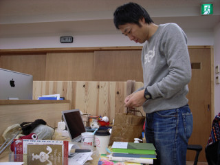 引越しとゲッコーと姉妹。 なんのことはない、タイトルは、写真をとった順番だ。 まず、隣は金曜に 「俺は、引越しをする!」といいだして、片付け始めた。 年末に引っ越しをして以来あほほどしごとがあって、引越しをするヒマがなかったそうだ。 もしかして、「羊どろぼう。」に区切りがついたとか思ってやってないか? 「それもある。」 それは無い。断じて無いぞ。 そして、ゲッコー。 弊社の会議室、かつて“カドR”と名付けられた部屋は、サヴィニャックさんのペンギンの絵を飾ったので、“ペンギン”という名前になった。 そこのライトの傘のところに、ゲッコーがいた。 10回とか11回とか連続で鳴くと、幸運がやってくるんだったよね。たしか。 会議中に鳴いてくれるといいんだけど。 で、一番下は、姉妹だ。 中林姉がやってきた。 姉は、弊社のテープ起こしのかなりの部分をやってくれている。 後ろ姿が特ににている。 2011/01/31 12:57 |