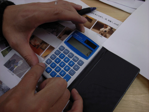 「羊」のことじゃった。 やはり、今日も朝きてみると、カメラが机の上においてあった。 さっさと謎などを解明したらよかったのだが、そこは、ほれ。なかなかね。 で、どうやら昨日の晩も、 「羊どろぼう。」の編集者とデザイナーはよなべ的仕事をコツコツとしていたようだ。 今日の主役は電卓だ。 どうやら、ページ数の算出をしていたのではないかと思われる。 そうさ、ページ数がでなけりゃ、見積もりはでないのが本ってやつだぜ。 「ページ数はなりゆき。」 「台割は最後」 という本の世界では非常識とされるチームですからね。 えっへん! なにはともあれ、318ページというのが最終ページ、か? 2011/02/03 23:17 |