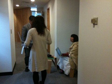 廊下はどうも寒かったようで、上着と、手袋をすることになったようです。