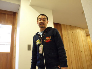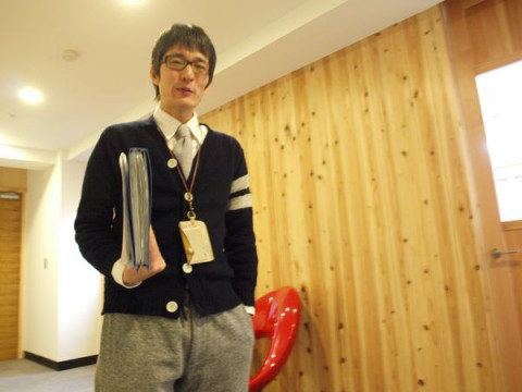 スガノさん、社内でも画板スタイル…。