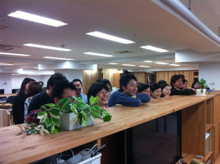 そのお客さまとは‥‥ みんながわらわらと集まって見に来ていたお客さまとはロンドンブーツ1号2号の田村淳さん! 雑誌『CIRCUS』(3月4日発売)と CSテレ朝チャンネル(3月13日放送)の 「Factory_A」という対談の企画でお越しいただいたのでした。 テレビも雑誌も、そしてほぼ日でもこの模様を掲載することになりましたのでスタッフも多いし、観客も多いしでなんだか社内の温度があがってました。 「ほぼ日」の社員にもなったみたいなのでアイコンができたり、この製作中にもがっつり登場する日が来るかもしれません。 それにしてもみんな見過ぎだ。 2011/02/15 17:02 |