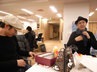 社長シリーズ。 それは昨日のことじゃった。 社長ちゃんが、iPhoneに熱心に何事かを入力していた。 何事かの中身はどうやらぐっさんが知っているので、傍らで見守っていたらしい。 そのあとい、ながっちゃんがやってきた。 ながっちゃんとは、セーターがおそろいです。 黒いUFHですね。 首巻きもまいてみます。 おそろい感がより出ていますね。 そのあとに、ひとしきり 「おそろい」ということについて爆笑をしたので、ここに収録しようとおもったのですが、とてもとても無理でした。 人はいろいろなことを考えています。 また、なにかの折に。 2011/02/22 10:00 |