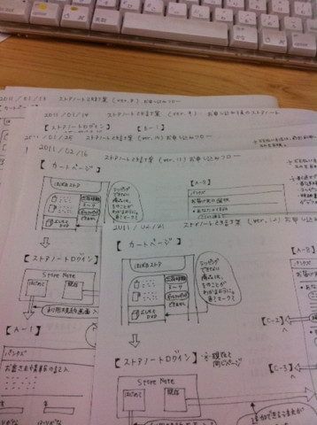 いつかのミーティング 宇宙部が3人いるミーティングをあなたは見たことがありますか? わたしは最近たびたび目撃しています。 宇宙部の そして、デザイナーの というメンバーで、たびたび集っているのは 「ほぼ日ストアノート」の改訂チーム。 宇宙部とデザイナーがいざ製作をはじめてから 「これなんだっけ?」とならないように 手作りの仕様書は、前回ついに 「バージョン12」となりました。 当初は、機能をひとつかふたつ追加するだけの予定だったんですがバージョン6ぐらいの時点で 「これ、改築じゃなくて、新築だね」 という発言が。 改訂の壮大なボリュームに宇宙三兄弟が勢揃いするミーティングとなりました。 ちなみにその日のミーティングでは、 「プログラミング言語の JavaとJavaScriptとは別物である」 ということを宇宙部に教えてもらいました。 宇宙ではない我々には何がどうちがうのかよくわからないけど、宇宙が3人いると、そういう話がアウェイじゃなくてたいへんうれしいらしいです。 いろいろと説明してもらったんですがわたし個人としては 「"JavaScript" のことを略しているつもりで "Java" と言うのはちょっとかっこわるい」 ということだけ覚えておくことにしました。 ちなみに、 「新ストアノート」のお披露目は、ざっくり夏を予定しています。 ナンコに靴を入れ替えられたりしながら まだもう少しミーティングを重ねます。 2011/02/25 15:13 |