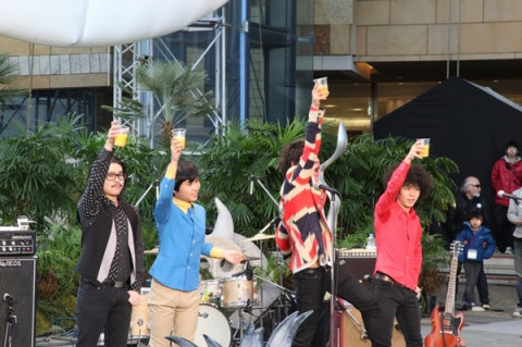 岡本太郎さん100歳のお祝いの乾杯で、OKAMOTO'Sのライブが終了。