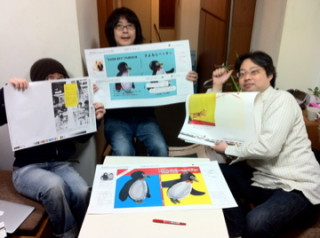 校了! プリグラフィックスさんの事務所にいます。 とくに問題なく、作業は進み、『さよならペンギン』、校了です! 読者の方からご提供いただいた美本がほんとうに役に立って、すばらしい色が再現できました。 「うーん、いい色だ」と藤井さんもご満悦。 本を提供してくださったみなさん、どうもありがとうございます。 また一冊、本が出ていきます。 いい本です。 すてきな絵本です。 帯の推薦文は、本上まなみさんと、荒井良二さんが書いてくださいました。 どちらも、とってもいいコメントですよ。 まだまだきっといろんなことがあって、たいへんだと思いますが、できることを、ひとつずつ。 こうやって本を出すことが、なににつながるのわかりません。 でも、みんなが回し続ける大きな輪のようなものを、ひとりずつがちゃんと回したほうがいいような気がするのです。 胸がしめつけられるようなこともたくさんありますが、どうぞ、みなさん、気をつけて。 さぁ、うちに帰ろう。 2011/03/12 17:51 |