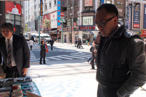 そのときBRUTUS編集部の西田さんはマグカップ係として新宿の街にこのうえない愛想をふりまいておりました。