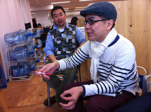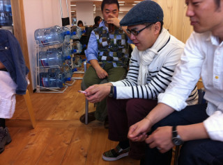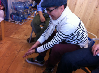 今日の会議で、ちょっとしたワカサギ釣りとか釣り堀とかで使うような椅子だったので、エア・釣りをされておられました。
