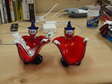 「机の上のグッズ」である藤田元司さんからの贈り物のガラス細工もいっしょに磨きました。