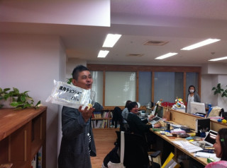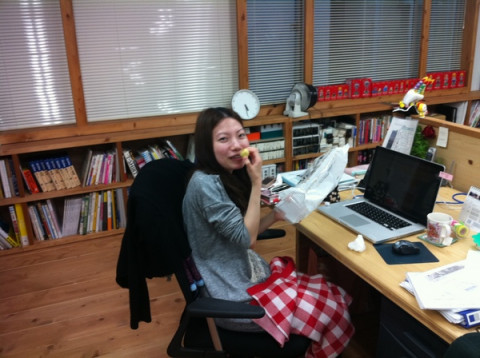 おやつオンナ。 「おやつオンナって呼んじゃうぞ!」 社内をぶらりとしていた 「こんなに食べちゃったの?」 「いえ、もとはハリウさんが買ってきて、 おいしそうって言ったら 残りをあげますって言われたんですけど ほとんど残ってなかったんです」 「いや、ぼくはほとんど食べてないんです」 「いえいえ、ハリウさんがほとんど食べて」 「いやいや‥‥」 「いえいえ‥‥」 どちらがどれだけ食べたかはわかりませんが、巨大なお徳用パッケージの最後のひとつを食べたのはワカタ。 おやつオンナと呼ばれたのはワカタ。 お菓子でできていると言われているのもワカタ。 すべて事実のみレポートしておきます。 2011/04/12 17:36 |