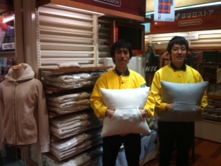 サンプルのハグクッションをかかえてあー、気持ちいい…とちいさな声でつぶやく、イトウさん、イワイガワさん。