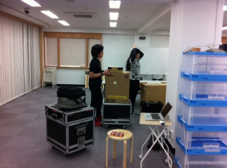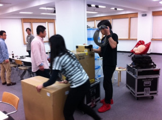 ゴロゴロ準備中! 「ゴロゴロゴロ。」 「ガタ!ゴロゴロゴロ。」 なんだなんだ! 朝から騒がしい音がするぞー。 ゴロゴロ音についていくと…わー、大ホールに機械がいっぱい。 そうかそうか。 クレモンティーヌさんのライブがここで行われるんですね。 その準備のゴロゴロだったのか。 みんながんばれー。 今日のライブの配信予定はこちら。 --------------------------------2011年4月21日(木) 16時より『アニメンティーヌ・ライブ』@保育園(17時終了予定) 20時より『クレモンティーヌベスト・ライブ』@ほぼ日大ホール--------------------------------お時間があえば、ご覧頂けるとうれしいです。 クレモンティーヌさんのすてきなやさしい歌声で、うっとり癒されましょうー。 2011/04/21 12:35 |