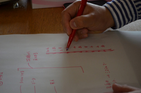 そして、だれがどのお便り担当なのか、もちろん、手書きで表をつくります。
