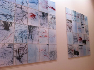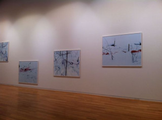 Trails ひきつづき、初台駅の東京オペラシティ アートギャラリー ホンマタカシ ニュー・ドキュメンタリーの展覧会場におります。 これこれ、この写真を前に伊藤総研さんに教えてもらってずっと観てみたかったんですよ。 これはTrailsというシリーズでホンマさんが知床の山の奥深くの狩猟のあとを収めたものです。 獲物はシカだったそうなのですが、ここにもシカは映っていません。 この写真の飾り方が絵画みたいだなぁ、と思っていたらそこにはホンマさんの描いた絵が飾ってありました。 あの画は血痕で、この絵は、赤い具材。 2011/05/12 14:57 |