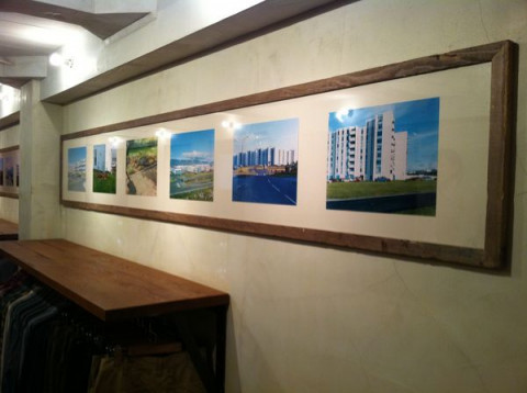 おおきな額ぶち 下に降りると、趣きのある大きな額にホンマさんのアイスランドのシリーズの写真が展示されていました。 この額、このお店のご夫妻の手作りだそうです。 「こんな大きな額を作ったのは はじめてです。 3mの、古い木材が そんなにあるわけじゃないので こういうことをするのはけっこう珍しい」 とおっしゃっていました。 Tシャツもたくさん揃っていて 簡さんのお店も近いし、ぜったいまた来ます、と思ったのですが、 「開店しているのは 月にひと桁だったり するときもある」 とのこと。 お店のホームページで営業時間をチェックしてから来ましょう。 ちなみに、ホンマタカシさんの写真を展示している22日までの間は木曜金曜以外は毎日開いているそうです。 ホンマさんのアイスランドシリーズ、お店の窓みたいになってなんだかぴったり、でした! 2011/05/12 19:58 |