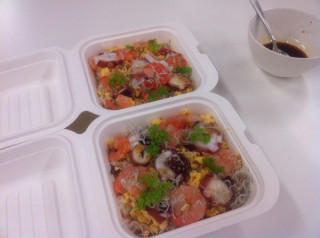 しょうがのちらしずし 経理のイサワです。 (新人なので、 まだ顔のアイコンがありません) 習いたての伝票の処理で手こずっているととつじょ社内に歓声があがりました。 さきほどシェフの投稿にもありました料理研究家の山田英季さんが、しょうがのシロップで、乗組員のためにちらしずしを作ってくださいました。 この会社に来て驚いたのは、食べ物への反応が全員ものすごく早いこと。 あっというまに無くなりました。 見た目も味も爽やかでしたが、作られた山田さんがさらに爽やかでした。 2011/05/17 13:28 |