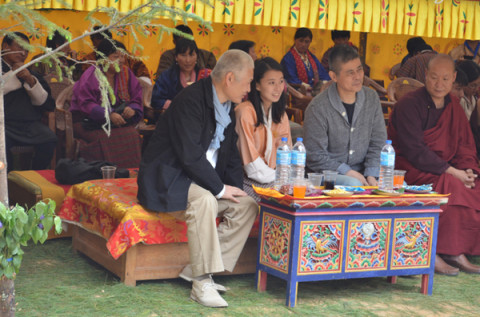 ブータン班。 ギアナ班も出発したようですね〜。 ブータン班はただいま一日のプログラムを終えまして、伸坊さん、社長の泊まるホテルから移動してまいりました。 こちら、標高が2300メートルほどありますので、階段などを登ると息切れがややします。 それはさておき、本日は寺院で開催されたお祭りを見学に参りました。 そして、寺院からホテルへの移動中にそれは起こったのです。 大粒の雨が空から落ちてきました。 「黄昏」ロケは必ず雨がふるというお約束がすでに遂行されております。 さて、明日はどうなることやら。 2011/05/17 23:30 |