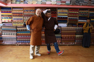 忙しくも充実した一日。 こんばんは、永田です。 昨日もお伝えいたしましたとおり、黄昏チームはいま、ブータンにいます。 今日は、イベントの多い1日でした。 午前中、伸坊さんと糸井がブータンの民族衣装である「ゴ」を選び、ティンプーのメインストリートにある小さなおみやげ屋さんで買い物し、紙漉の工場を見学し、そして、ブータンの首相とお会いし、メモリアルチョルテンでお参りして、最後は占いまでしてもらいました。 あ、ちなみに、伸坊さんの来世は 「このままだと象かも?」でした。 途中でいただいた昼食も、御手洗さんが予約してくださったブータン料理の晩ご飯も、とても美味しかったです。 食べながら、移動しながら、昨日と同様に私たちは、 「落ち着くねぇ」「なじむねぇ」 「なんでだろうねぇ」と話しました。 季候や人柄など、さまざまな理由はあるのだと思いますが、今日一日過ごして、個人的に感じたことがあります。 たいしたことではないんですが、 「あ、だから落ち着くのかな」と感じた、ちょっとしたこと。 それは、ここに住む人々が、あるいは店やシステムが、 「観光客」を、いい意味で、放っておいてくれるということです。 わかりやすくいえば、町を歩いていて 「安いよ!」「買わない?」とつぎつぎに声をかけられるようなことはないし、お店に並んだおみやげが値下げ交渉前提の値付けをされていたりはしないのです。 たぶん、ほかの国とくらべると、ブータンという国の門は開かれてからまだ間がないのでしょう。 だから、観光客の数自体が少ない。 かといって、訪れる人がほとんどない、というわけでもないから、外国人が歩いてるだけで地元っぽい鋭い視線でもってじろじろ観察される、ということもない。 だから、なんというか、ぼくのように海外の旅にあまり慣れてない者が、知らない国でしばしば感じる、 「自分は観光客として ちゃんと振る舞えているだろうか」 みたいな変な不安がないのです。 で、挨拶をすると、笑顔が返ってくるし、ぐっさんがカメラを向けると、みんな、ちょっと照れながらすごく「いい顔」をしてくれる。 そんな、ブータンです。 二日目も、充実してました。 布と、紙と、キーホルダーと、Tシャツなどを買いました。 ブータンの特徴ある国旗が全面的にあしらわれたステッカーも買いました。 あとで、トランクに貼ろうと思います。 それでは、また。 2011/05/19 04:43 |