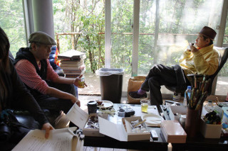 4年越し。 その2 4年前、横尾忠則さんにお願いした 「細野晴臣夢日記」のためのさし絵が、 とうとう完成した! という話のつづきです。 よろこびいさんで、横尾さんのアトリエに伺ったのですが、細野さんも横尾さんも、おはぎをほおばったり、好きなCDをえんえんと探したりして、なかなか本題に入りません。 で、まあ、結局は拝見できたのですが、‥‥いやあ、すごかった! 夢の絵じゃなかったんですけど、やっぱり夢の絵でした。 (写真に写っている絵ではありません。 念のため) 来週にでも「夢日記」でお伝えしますね。 なお、きょうのようすは、5月22日(日)午後9時30分から、NHK-FM 「サウンドクリエイターズファイル」でも放送されます。そちらもおたのしみに。 それにしても、すごかったなあ。 2011/05/19 23:06 |