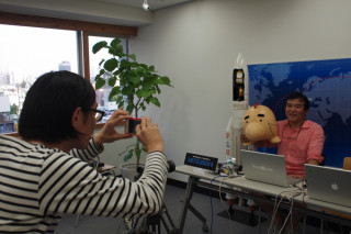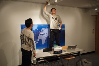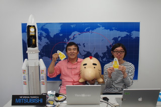 期間限定観光名所 仏領ギアナからのロケット発射中継はとうとう明日早朝5時38分。 そのために東京サテライトスタジオも作ってるんですよ。 今回中継するアリアン5を作っているアリアンスペース社さんから巨大ロケット模型もお借りしてかなりいい感じに仕上がっております。 もちろん山口工務店プロデュース。 そこがなにやら観光名所になっているようです。 お仕事にいらしたひとたちが記念写真まで撮ってます。 特別にロケットシールをあげたら、すごくよろこんでくれました。 みんなロケットが好きなんですね。 いいですよねー。ロケット。 ということで東京スタジオも、とってももりあがってまーす。 2011/05/20 18:24 |