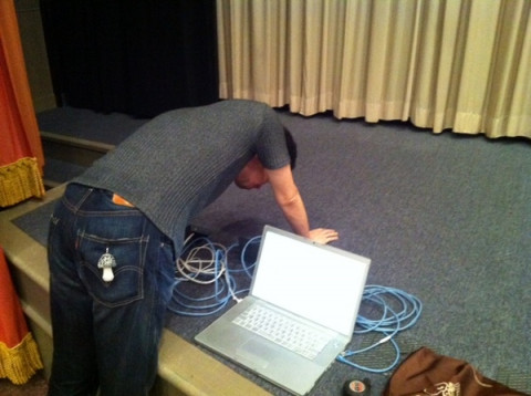上映後のトークショーをUST中継するのでどこにカメラを設置するか、ネットワークの環境はどうか。など。
