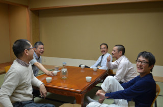 茶話会というもの。 弊社には、年度始めに、社長とサシでトーク、それはつまり、社長と面談という制度があります。 こちらはこちらでなかなかにみんな楽しみにしているのですが、サシですからね。 ちょっと緊張したりもします。 で、今年からたいへんナイスな制度が導入されました。 それは、 「社長と少人数でトーク」というものです。 ランチのひとときを、社長と楽しくすごす、というやつです。 つまりは茶話会であります。 こちらのグループわけは、乗組員を誕生日順にならべて、上から4人づつにしていった、という大変大雑把なものですが、業務にはまったく関係がない分け方なので、いろんな人がごっちゃになるということで好評でした。 今日はその「最年長の会」と社長の茶話会が行われていました。 ときおり和室から、ワハハハという、おっさんの笑い声を絵にかいたようなそういう笑い声がします。 とても、楽しそうだなあ。 2011/05/25 14:30 |