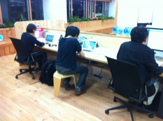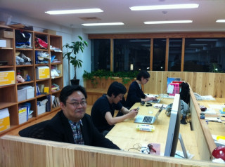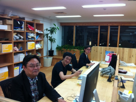 眼鏡ブラザーズふたたび。 1年半前、BRUTUSの吉本隆明特集号で机をならべた 眼鏡ブラザーズがふたたび一列並びになっています。 全員同じ大学出身。 全員眼鏡。 全員黒い服。 全員小声。 というブラザーズの共通点は前回のプロジェクトの時とかわりません。 長男の横風さんこと 一番奥にすわる次男、コタニさんはスガノさんのプロジェクトと手帳本のプロジェクトのたすきがけです。 どうやら入稿時期も同じぐらいらしい。 大丈夫かしら。 まんなかに座る三男坊、コウちゃんは控えめに背もたれなしの椅子でがんばってます。 なんだか気になる3兄弟です。 2011/06/01 19:39 |