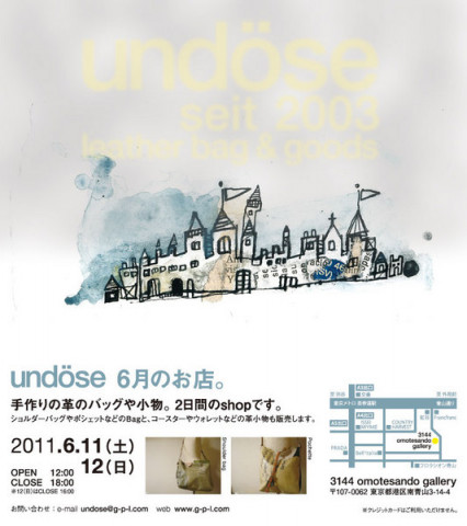 undoseさんの展示販売! ほぼ日では、登場するたびに、毎回抽選販売になってしまうundoseさん。 この週末に、 「6月のお店。」がオープンします! いつもの場所「3144 omotesando gallery」にてショルダーバッグから小物まで、いろいろなものが並ぶそうです。 実物を見たことがない方、ご興味のある方、お近くまで行かれた際にはぜひ行ってみてください〜。 きっと、おふたりが出迎えてくださいますよ! --------場所:3144 omotesando gallery 〒107-0062 東京都港区南青山3-14-4 日時:6月11日(土)、12日(日) 12〜18時 ※12日は16時まで http://www.g-p-l.com/undose_index.html -------- 2011/06/10 15:40 |