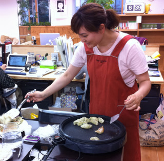 目の前で、どんどん焼き上がってくる餃子を見ていると、もう、席についてる場合じゃ、ありません!