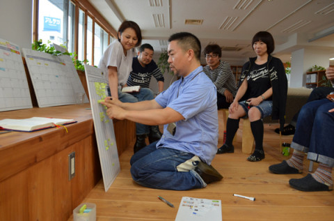 新しいホワイトボード。 読み物チームは、平均年齢がたぶんどのチームよりも上になっているのではないか、とおもわれることから、 (35歳のおっくんが最も若手、 つまり、ペーペーがすでにいい年。) なのかどうかはわからないけど、情報の共有は常にアナログを旨としております。 いや、意地でもアナログというかたくななやつじゃなくて、一番いい方法をかんがえたらアナログだったというやつです。 その巨大ホワイトボードに、コンテンツの開始日をふせんでぺたぺたする、というやつしかり。ですよ。 で、今週導入されたのは、仕事氷山の全貌を知る表です。 いや、メールがいきかったり表に出ているしごとは読み物チームのみなはんの、氷山の一角であるからして、それの一角ではないのこり九角の部分、 (一角じゃなかったら、その反対は、 九角でいいのか? それとも九十九角なのか?) などを、とりあえず共有して、ひとりでぶつぶつテンパらないようにする、という永田案です。 このシェフの前にあるボードです。 ところで、シェフの正座姿はカワイイ。 んでもって、永田さんの靴下もカワイイ。 いきなりホワイトボードでつくってしまいましたが、ちゃんと活躍するのかなあ、この板。 そのうち、酢飯をさますためのうちわのでっかいの、とかになってないかなあ。 まあいいか。 2011/06/14 12:09 |