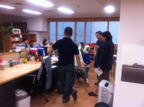 こんにちは。カメラの調子が悪いイサワです。 (写真がぼやけてすみません。) 週も中盤、社内も慌ただしく (今日はリュック&ポシェットの発売日!) 目の前では、3か所同時で打合せがされています。 1枚目はオーソドックスなパソコンを見ながらのスタイル。 なにかトラブったのでしょうか。 2枚目は相談スタイル。 学校の職員室をほうふつとさせます。 3枚目は立ち話スタイル。 それぞれのスタイルで仕事は進むんですね。 2011/06/15 15:40 |