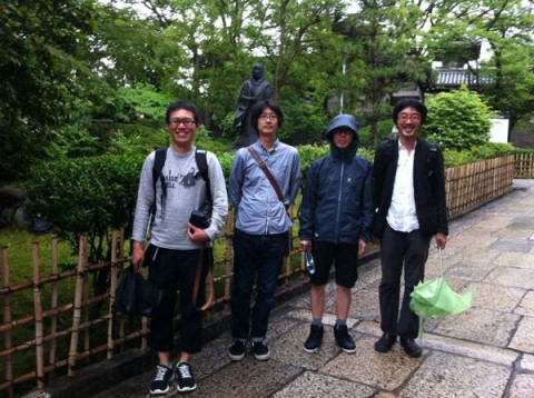 メガネの記念写真を撮っているとお寺の守衛さんが