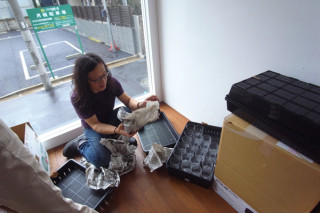 土曜日から開催です! きょうはじまったコンテンツ 「コップ屋の高橋禎彦さん。」 南青山のギャラリーCOMOさんでの個展は、あす土曜日から開催です。 今日は搬入日だということで、ちょこっとお邪魔してみたところ、まさしく開梱陳列のまっさいちゅう。 新作のコップが並べられておりました。 その数、500コ。 種類は、20種以上。 価格帯は、4,200円のものが中心のようです。 じつは私、高橋コップや高橋グラスを長いこと使っておりますが、ほんとーに、いい! ワインもお水もオレンジジュースも牛乳もよりおいしく感じるんですよー。 それをおしらせしたくてこのコンテンツをつくったようなものです。 ともだちへのプレゼントなどにもときどきつかっています。 おひるついでにいっしょにでかけた (いくつか、狙っているようです。) あすからの個展では気に入ったコップでお水の「試飲」をすることができます。 洋服の試着があるならコップの試飲があってもいいんじゃない? というこころみです。 見た目はどうか、手になじむかどうか、だけじゃなくて、そんなふうにして選んでくださいね、ということでした。 個展の詳細はこちらをどうぞー。 (PDFがひらきます) 2011/06/17 17:11 |